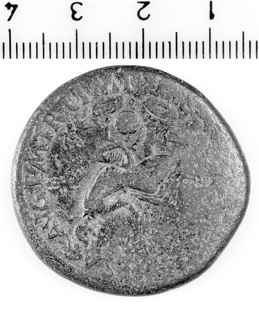 D/ Testa nuda di Nerone Druso a s. R/Claudio seduto a s. su sedia curule con ramoscello nella d.; ai suoi piedi,armi