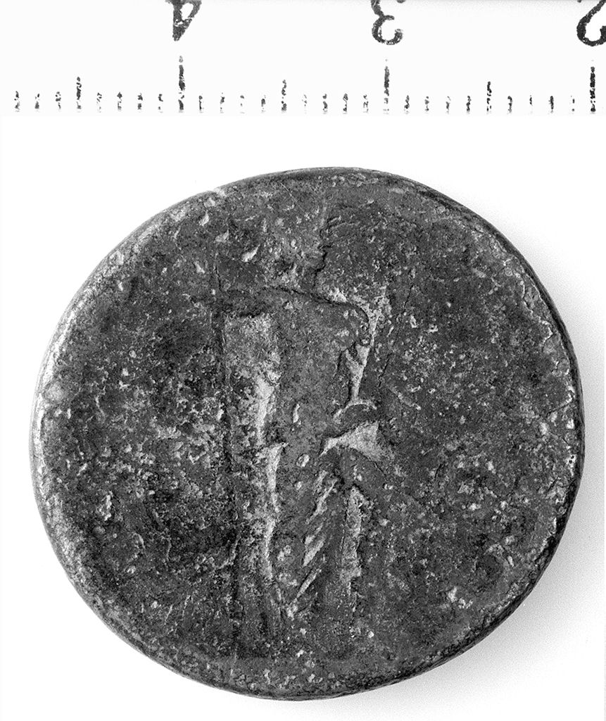D/ Testa laureata di Domiziano a d. R/ La Virtus galeata stante a d. con asta e parazonio