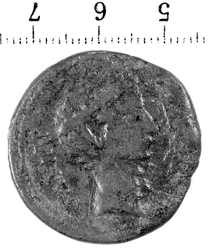 D/ Testa nuda barbata di Ottaviano a d.. R/ Testa laureata di G. Cesare ad