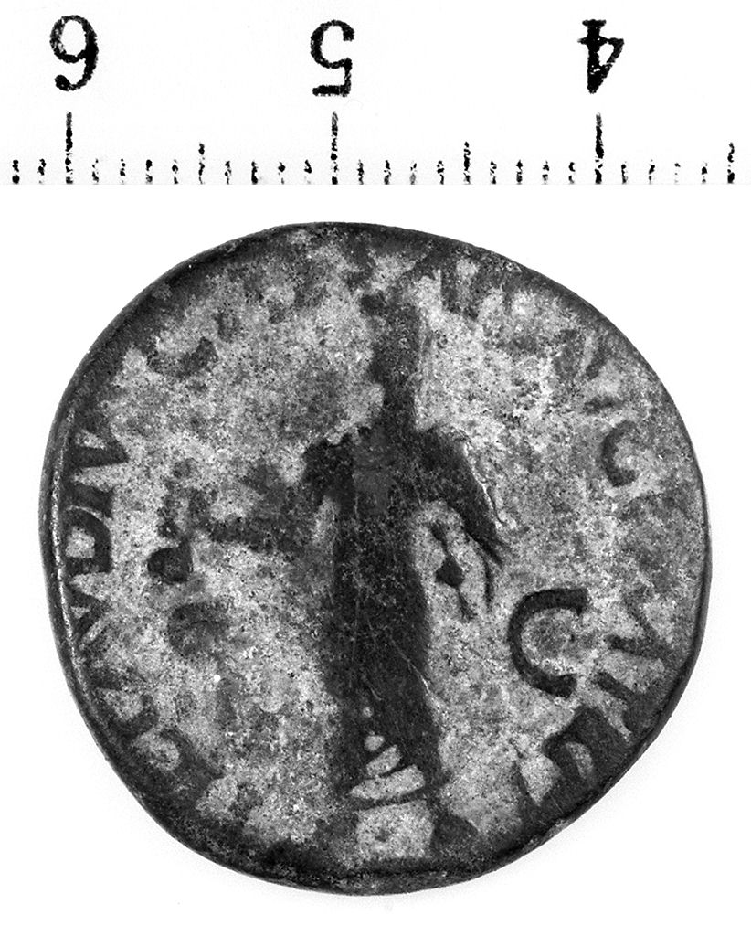 D/ Testa di Antonia a d. con i capelli a treccia. R/ Claudio velato e togato stante a s. con simpulum nella d. distesa e la s. sul fianco