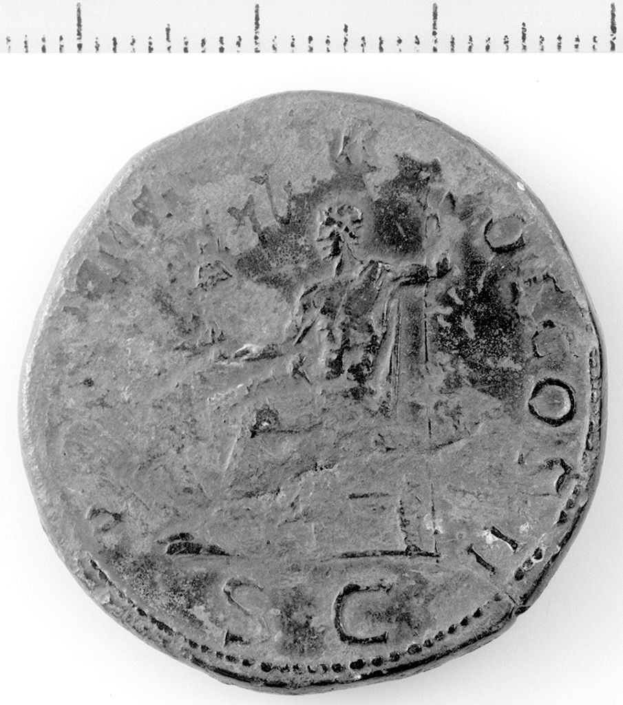 D/ Busto di Adriano a d., laureato e condrappeggio sulla spalla s. R/ Adriano(o Giove) assiso a s., busto nudo, con lungo scettro nella s., ostentacon la d. la statuetta della Vittoria