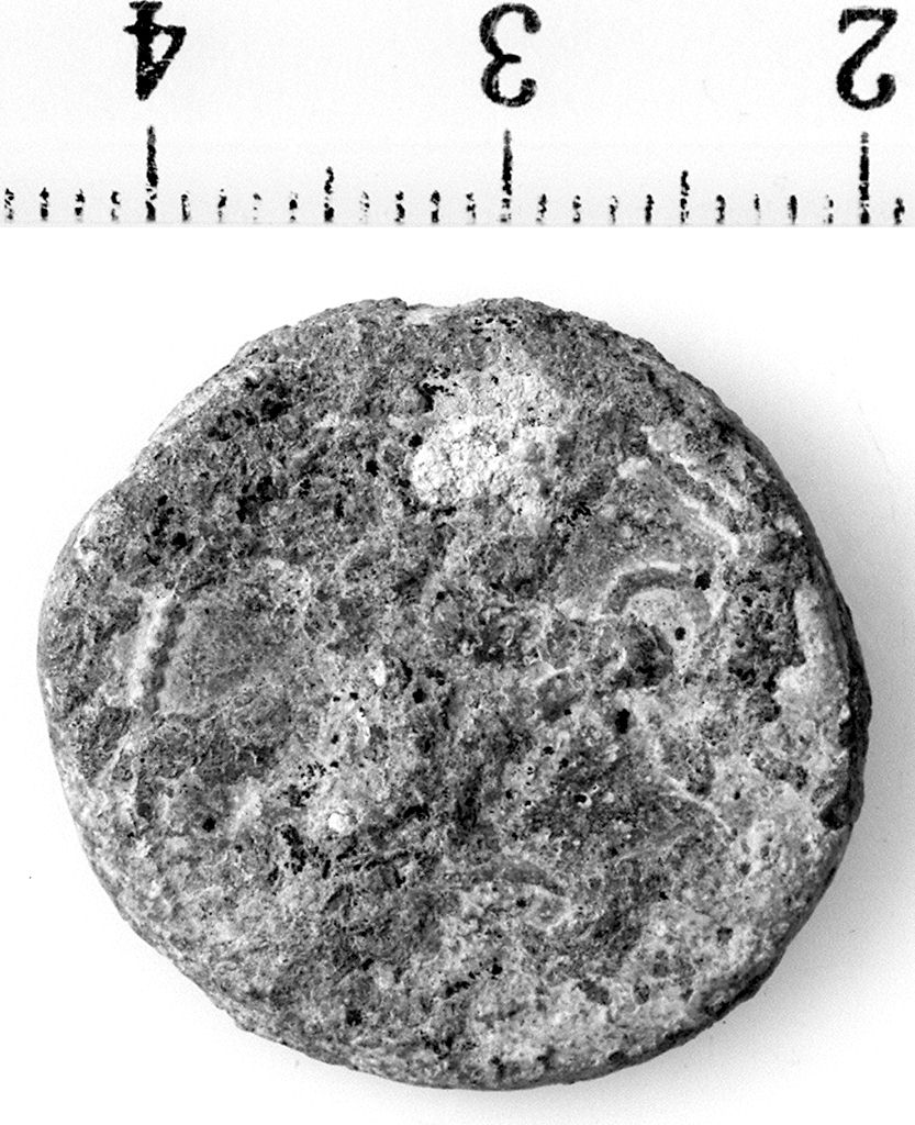 D/ Ruota a sei raggi, doppio anello e punto in rilievo. R/ Ancora e anello in rilievo
