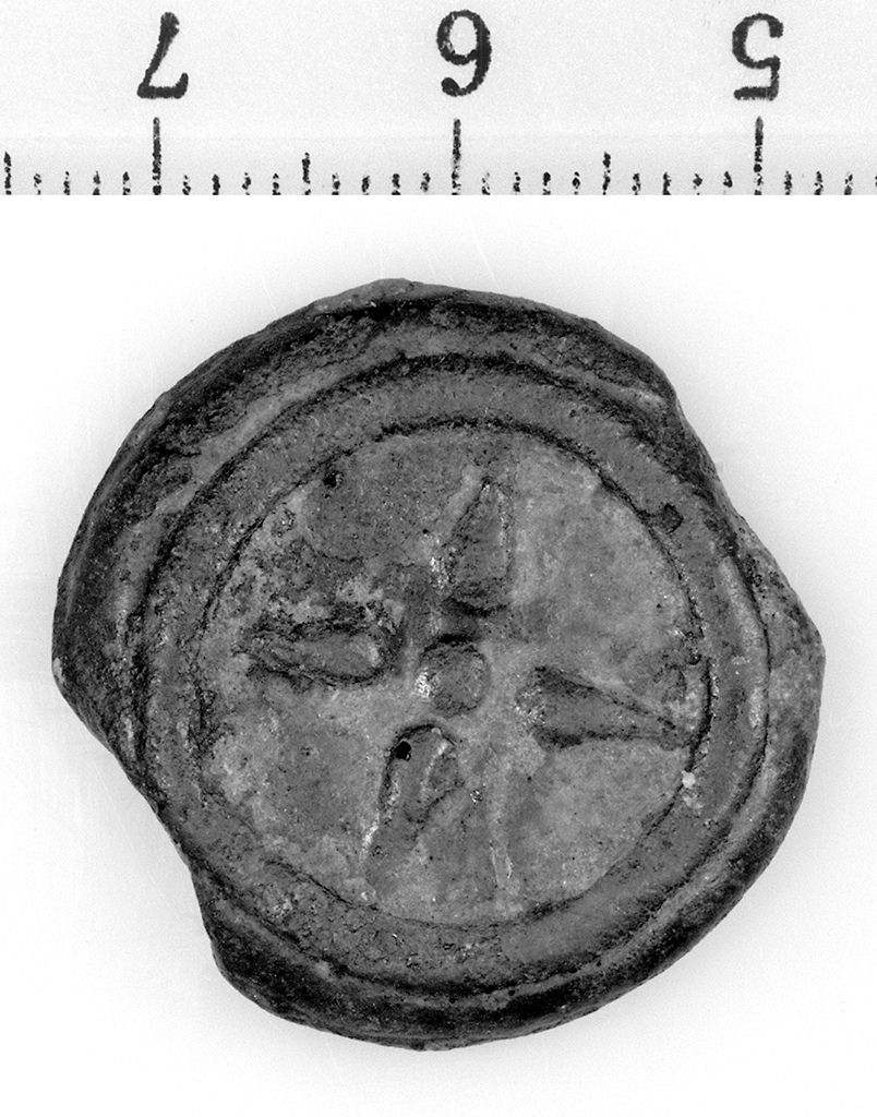 D/ Ruota a quattro raggi e anello in rilievo. R/ Ruota a quattro raggi e anello in rilievo