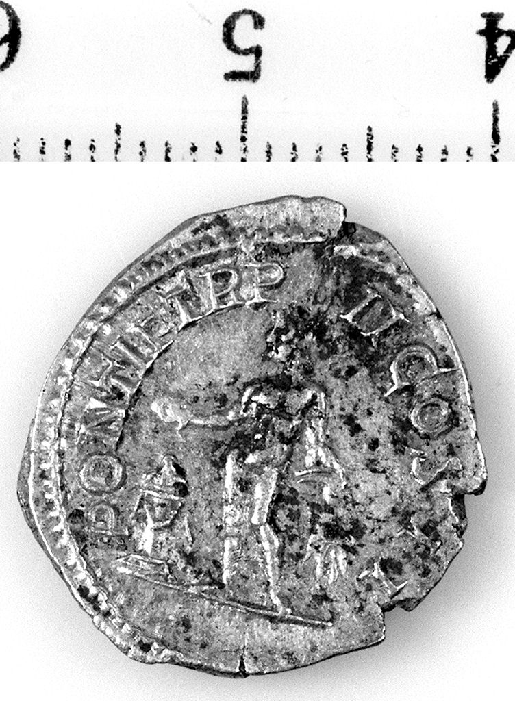 D/ Testa laureata e barbata di Geta, volto a d.. R/ Genio nudo stante a s. in atto di sacrificare con la mano d. con una patera su un altare acceso; nella mano s. spighe di grano