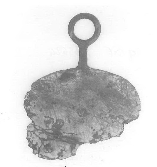 lama quadrangolare con manico a breve codolo terminante nell`anello di sospensione