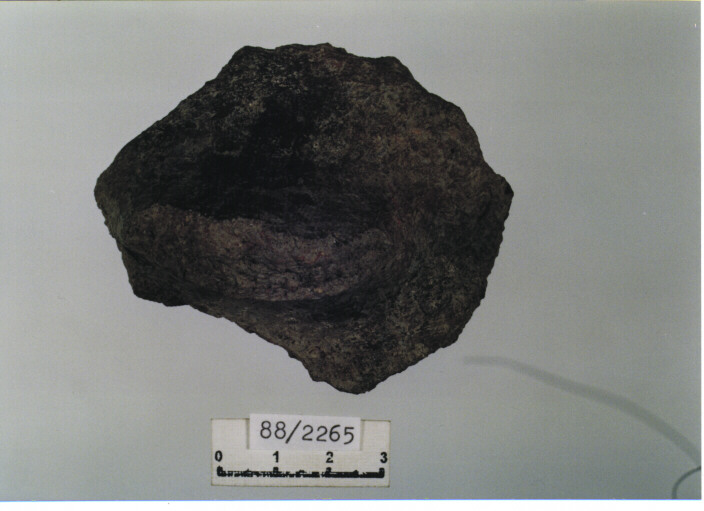 PARETE DI BACINO TRONCO-CONICO, ANSA A NASTRO. IMPASTO GRIGIO CON INCLUSICALCAREI, COSTOLATURE SEMICIRCOLARI ALL'INTERNO, SUPERFICIE LISCIATA A STECCA