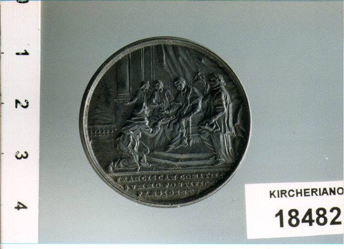 D/ INNOCENT . XIII . P . M . A . III, BUSTO A D. CON CAMAURO E MOZZETTA; NEL TAGLIO HAMERANUS . F .; R/ PONTEFICE RICEVE FRATE GENUFLESSO; IN ESERGO FRANCISCAN . COMITIIS / SVMMO . PONTEFICE / PRAESIDENTE