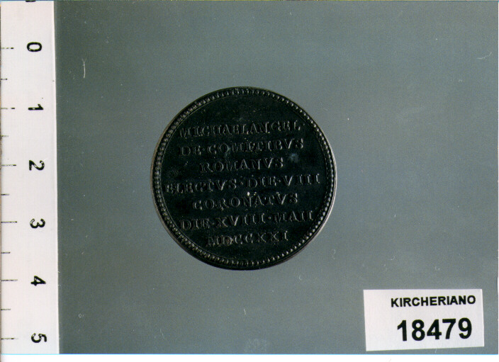 D/ INNOCENT . XIII . PONT . MAX ., BUSTO A D. CON TRIREGNO; NEL TAGLIO HAMERANI; R/ NEL CAMPO MICHAELANGEL . / DE . COMITIBVS / ROMANVS / ELECTVS .DIE . VIII / CORONATVS / DIE . XVIII . MAII / MDCCXXI