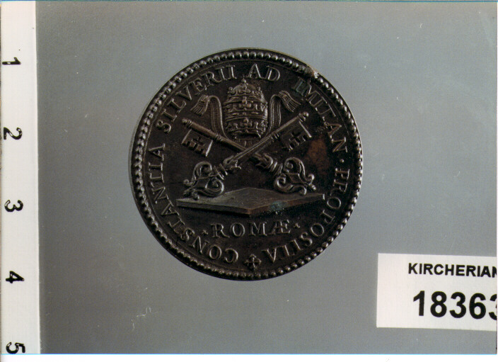 D/ CLEM . IX . P . M . CREAT . XX . IVN . 1667 ., BUSTO A D. CON CAMAURO E MOZZETTA; R/ + CONSTANTIA SILVERII AD IMITAN . PROPOSITA, TRIREGNO E CHIAVI DECUSSATE SU ROMBO; SOTTO ROMAE
