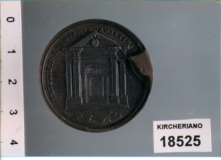 D/ BENEDICT . XIV . PONT . M . A . IV, BUSTO A D. CON CAMAURO, MOZZETTA ESTOLA; NEL TAGLIO O . HAMERANI .; R/ TRICLINII . LEONIANI . PARIETINIS . (RESTI) TVTIS, L'ABSIDE DEL TRICLINIO LEONIANO POSTO INNANZI ALLA BASILICALATERANA
