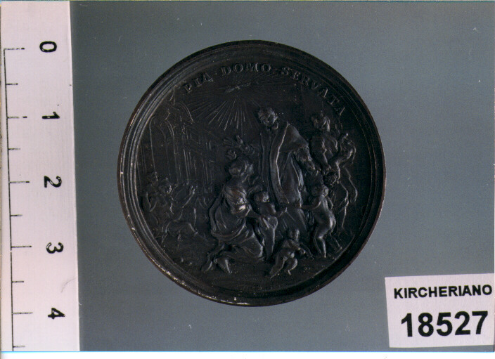 D/ BENED . XIV . LAMBERTINVS . BONON . P . M . A . VI, BUSTO A D. CON CAMAURO, MOZZETTA E STOLA; NEL TAGLIO O . H .; R/ PIA . DOMO . SERVATA, PONTEFICE TRA POVERI FANCIULLI