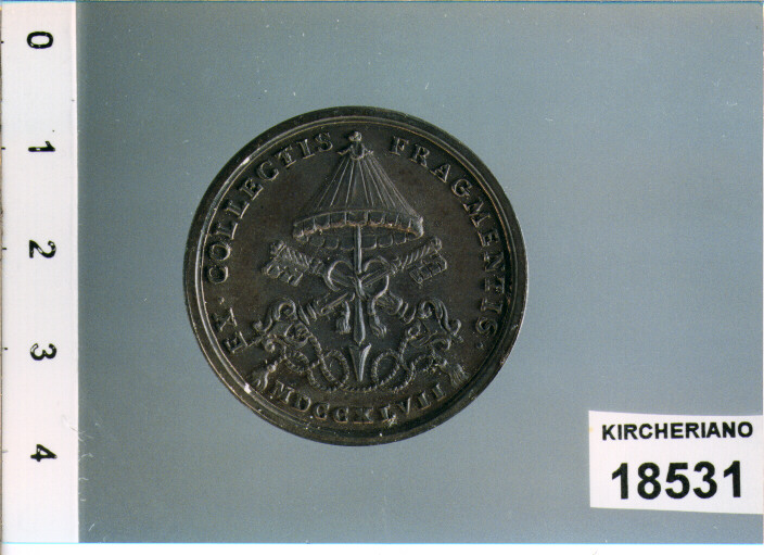 D/ BENED . XIV PONT . M . A . VIII, BUSTO A D. CON CAMAURO, MOZZETTA E STOLA; R/ EX . COLLECTIS FRAGMENTIS ., CHIAVI DECUSSATE SOTTO PADIGLIONE DI CHIESA; SOTTO MDCCXLVII