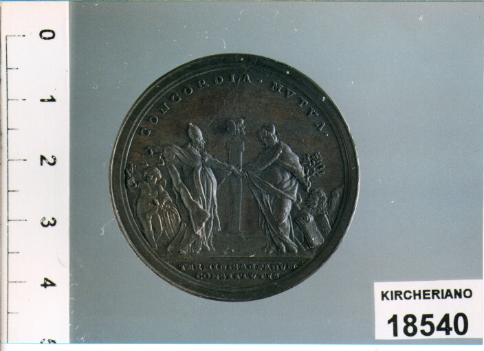 D/ BENED . XIV PONT . MAX . AN . XIII, BUSTO A D. CON CAMAURO, MOZZETTA ESTOLA; NEL TAGLIO O . HAMERANI; R/ CONCORDIA . MVTVA, FIGURA DELLA CHIESASTRINGE LA MANO A QUELLA DELLA REPUBBLICA VENETA; IN ESERGO TERMINIS . AD. PADVM / CONSTITVTIS