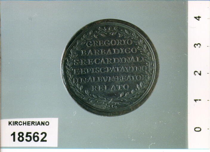 D/ CLEMENS . XIII P . M . A . III, BUSTO A S. CON TRIREGNO; NEL TAGLIO 1761; R/ GREGORIO / BARBADICO / S . R . E . CARDINALI / E . EPISC: PATAVINO / IN . ALBVM . BEATOR / RELATO ENTRO CORONA DI OLIVO