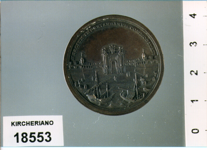 D/ CLEMENS . XIII P . M . A . III, BUSTO A S. CON TRIREGNO; SOTTO . H . 1761; R/ MERCIVM . IMPORTANDARVM . COMMODITATI, PORTO DI CIVITAVECCHIA