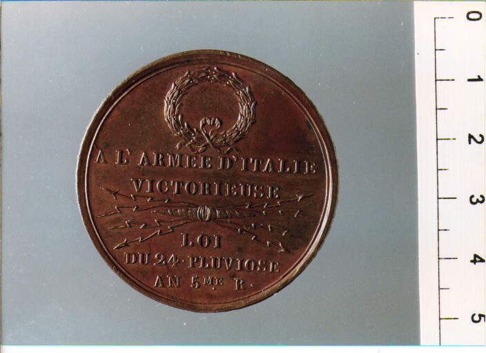 D/ A L'ARMEE D'ITALIE / VICTORIEUSE LOI / DU 24 . PLUVIOSE / AN 5.ME . R .; R/ FIGURA DI MANTOVA CONSEGNA LE CHIAVI; SOTTO LAVY; IN ESERGO REDDITION DE / MANTOUE