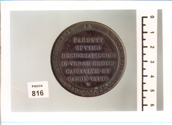 D/ PIVS.IX.PONTIFEX.MAXIMVS.,BUSTO A S.; SOTTO GIVS.CERBARA.F.; R/ NONIS.SEPT.AN.M.DCCC.LVII.;NELCAMPO,PARENTI/OPTIMO/DESIDERATISSIMO/IN.VRBEM.REDVCI/CAPITVLVM.ET/CANON.VATIC