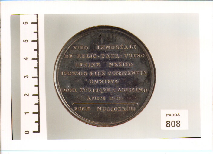 D/ HERCVLES CONSALVI S.R.E.DIACONVS CARDINALIS,BUSTO A D.; SOTTO G.CERBARA.F.; R/ VIRO IMMORTALI/DE RELIG.PATR.PRINC./OPTIME MERITO/INGENIO FIDE CONSTANTIA/OMNIBVS/DOMI FORISQVE CARISSIMO/AMICI D.D/ROMAE MDCCCXXIIII