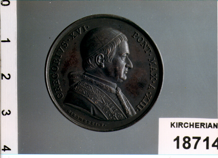 D/ GREGORIVS . XVI . PONT . MAX . A . XIII ., BUSTO A D.; SOTTO GIROMETTI. F .; R/ EGO DOMINVS ET MAGISTER, CRISTO LAVA I PIEDI A S. PIETRO; IN ESERGO EXEMPLVM DEDI / VOBIS; SOTTO G . GIROMETTI . F