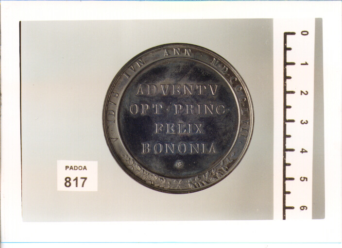 D/ PIVS . IX . PONTIFEX . MAXIMVS ., BUSTO A S.; SOTTO GIVS . CERBARA . F.; R/ V . IDVS IVN . ANN . M . D . CCC . LVII .; NEL CAMPO ADVENTV / OPT . PRINC . FELIX / BONONIA