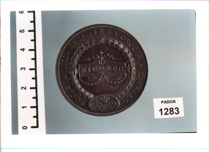 D/ CONCORSO IPPICO FESTE DI MAGGIO MILANO, STEMMA DI MILANO AI LATI MDCCCXC; SOTTO JOHNSON; R/ SOCIETA' MILANESE PER LA CACCIA A CAVALLO, SU TABELLA ENTRO CORONA DI ALLORO, RICORDO