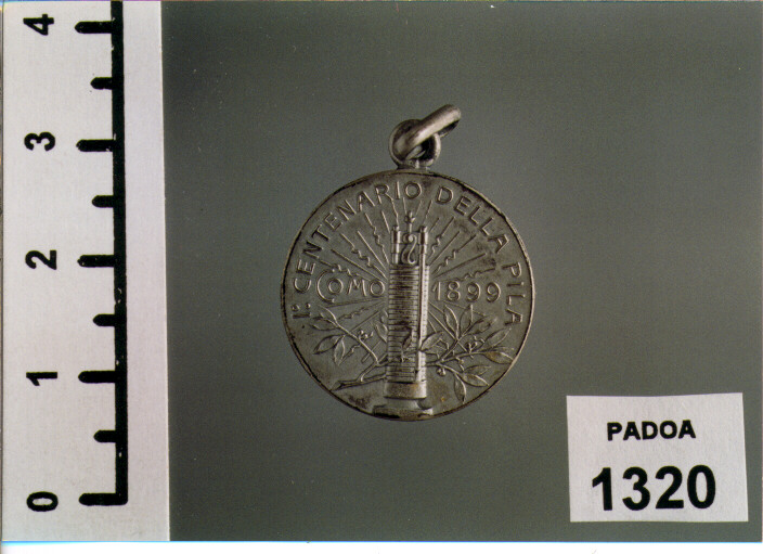 D/ ALESSANDRO VOLTA, BUSTO A D.; SOTTO S. J.; R/ I CENTENARIO DELLA PILA,LA PILA; NEL CAMPO A S. COMO; A D. 1899