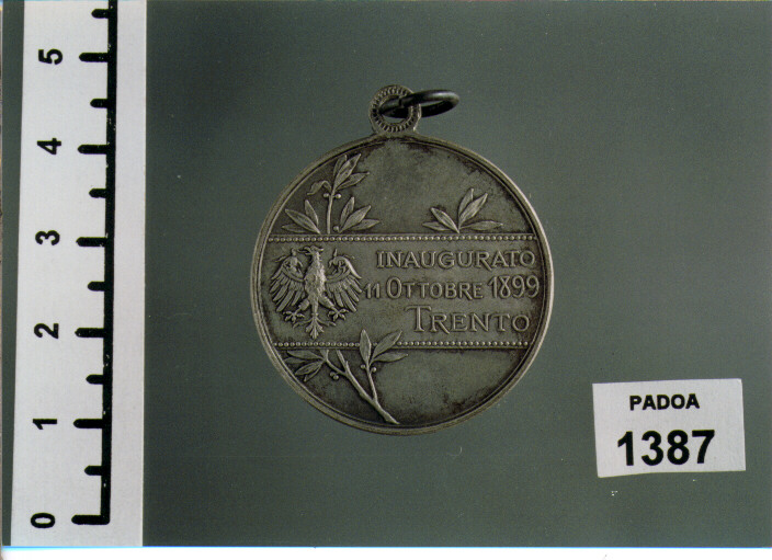 D/ ASILO S. MARTINO, VEDUTA DELL'ASILO; IN ESERGO, PROMOSSO DALLA LEGA/ NAZIONALE; R/ IN UN CARTELLO CON DIETRO RAMO D'ALLORO, INAUGURATO/ 11 OTTOBRE 1899/ TRENTO