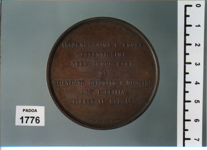 D/ ALFREDO BACCARINI DA RUSSI MDCCCLXXXVIII, BUSTO A S. ; SOTTO, GIOV. VAGNETTI FECE IN ROMA; R/ INGEGNO ANIMA E CUORE/ POTENTISSIMI/ NELL'ARDUE CURE/ DI/ SCIENZIATO DEPUTATO E MINISTRO/ AMO' L'ITALIA/ DIFESE IL POPOLO; SOTTO, LEONE VICCHI DETTO'