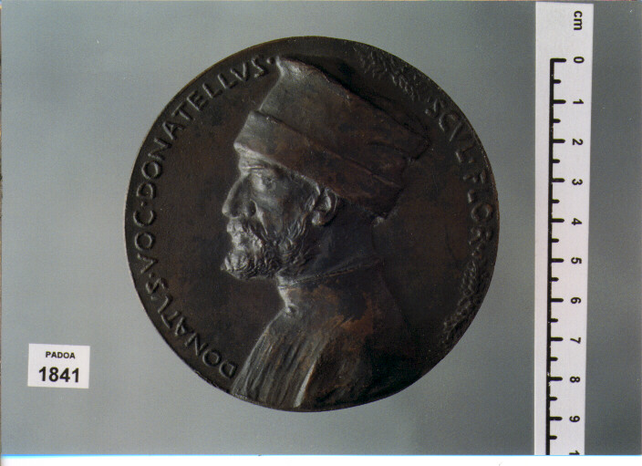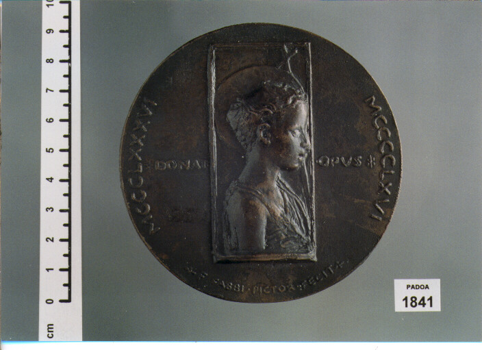 D/ DONATVS. VOC. DONATELLVS. SCVL. FLOR, BUSTO A S. ; R/ MCCCLXXXVI MCCCCLXVI; NEL CAMPO, BUSTO A S. , AI LATI, DONAT. . OPVS; SOTTO, F. . FABBI. DICTOR. FECIT