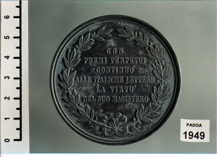 D/ PROF. LUIGI MARIA REZZI PIACENTINO, BUSTO A D. ; SOTTO, C. MOSCETTI; R/ CON/ PREMI PERPETUI/ CONTINUO'/ ALLE ITALICHE LETTERE/ LA VIRTU'/ DEL SUO MAGISTERO, ENTRO CORONA DI ALLORO