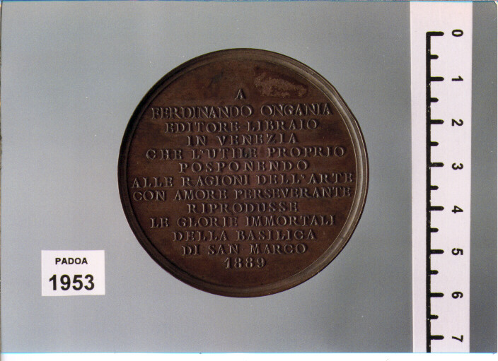 D/ UMBERTO I RE D'ITALIA, TESTA A S. ; SOTTO, SPERANZA; R/ A/ FERDINANDO ONGANIA/ EDITORE- LIBRAIO/ IN VENEZIA/ CHE L'UTILE PROPRIO/ POSPONENDO/ ALLE RAGIONI DELL'ARTE/ CON AMORE PERSEVERANTE/ RIPRODUSSE/ LE GLORIE IMMORTALI/ DELLA BASILICA/ ..