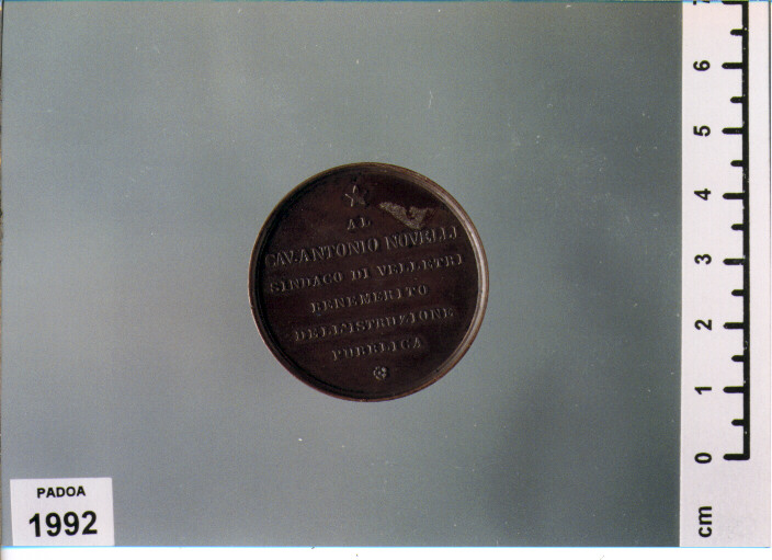 D/ UMBERTO I RE D'ITALIA, TESTA A S. ; SOTTO, SPERANZA; R/ AL/ CAV. ANTONIO NOVELLI/ SINDACO DI VELLETRI/ BENEMERITO/ DELL'ISTRUZIONE/ PUBBLICA