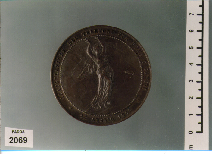 D/ VITTORIO EMANUELE III RE D' ITALIA, TESTA A S. ; SOTTO, GIOV. GIANI ROMA; R/ INAUGURAZIONE DEL TELEFONO FRA ROMA E PARIGI 1 LUGLIO 1906; FIGURA FEMMINILE ALLEGORICA STANTE CON LE BRACCIA SOLLEVATE