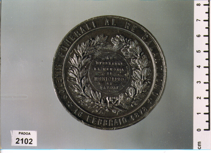 D/ VITTORIO EMANUELE II RE D' ITALIA, TESTA A S. ; SOTTO, GIANI; R/ SOLENNI FUNERALI AL RE GALANTUOMO 16 FEBBRAIO 1878; NEL CAMPO, AD/ ETERNARNE/ LA MEMORIA/ IL/ MUNICIPIO/ DI/ NAPOLI, ENTRO CORONA DI QUERCIA E ALLORO
