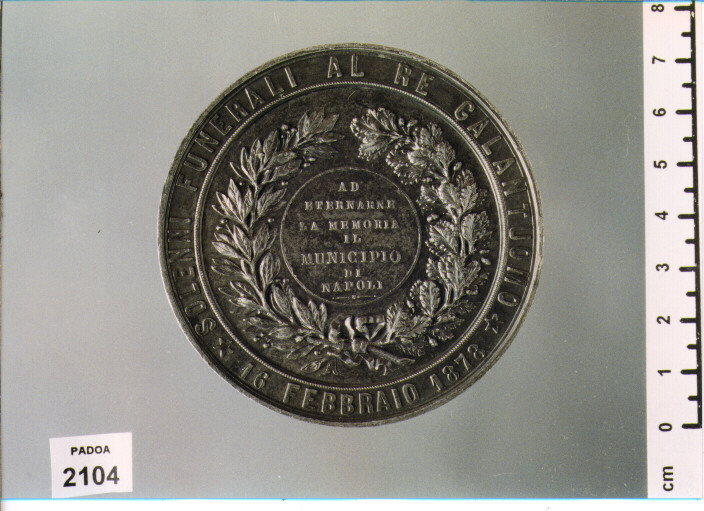 D/ VITTORIO EMANUELE II RE D' ITALIA, TESTA A S. ; SOTTO, GIANI; R/ SOLENNI FUNERALI AL RE GALANTUOMO 16 FEBBRAIO 1878; NEL CAMPO, AD/ ETERNARNE/ LA MEMORIA/ IL/ MUNICIPIO/ DI/ NAPOLI, ENTRO CORONA DI QUERCIA E ALLORO