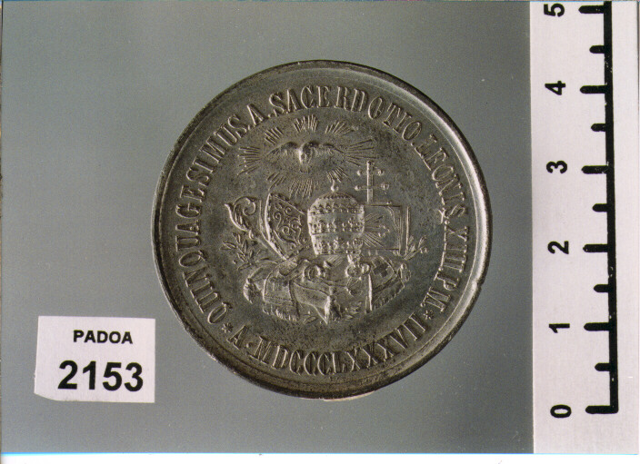 D/ QUINQUAGESIMUS. A. SACERDOTIO LEONIS. XIII. PM. A. MDCCCLXXXVII, INSEGNE PONTIFICALI; R/ IL PONTEFICE PREGA IN GINOCCHIO; SOTTO, A. SIRLETTI; INESERGO, IMITATE/ IL SOMMO PONTEFICE