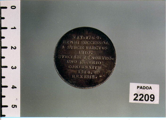 D/ CAROLUS XIV IOH. REX SVECIAE ET NORVEGIAE, BUSTO A D. ; SOTTO, C. E. ;R/ NAT. 1764. / REGNI SUCCESSOR/ A SVECIS ELECTUS/ 1810. / SVECIAM ET NORVEG. / UNO IMPERIO/ CONJUNXIT/ 1814. / REX 1818