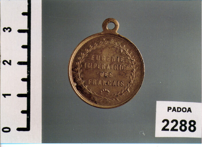 D/ EUGENIE IMPERATRICE, TESTA A D. ; SOTTO, C T; R/ EUGENIE/ IMPERATRICE/DES/ FRANCAIS, ENTRO CORONA DI OLIVO