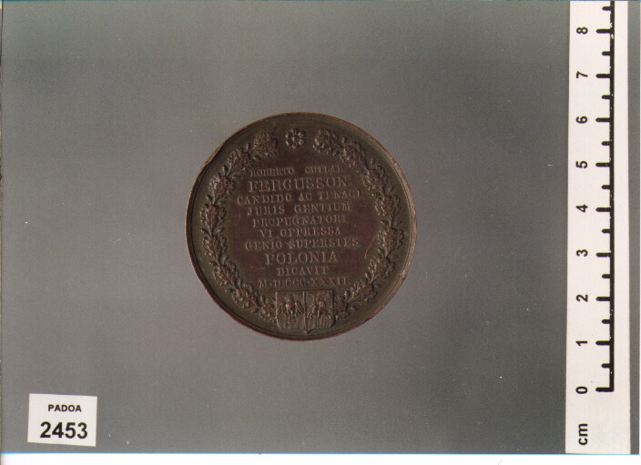 D/ NEC DEFERUNT QUI MEMINERINT MEI, TESTA A S. ; SOTTO, WL OLESZOZYNSKY F. ; R/ ROBERTO CUTLAR/ FERGUSSON/ CANDIDO AC TENACI/ JURIS GENTIUM/ PROPUGNATORI/ VI OPPRESSA/ GENIO SUPERSTES/ POLONIA/ DICAVIT/ M. D. CCC. XXXII. , ENTRO CORONA DI QUERCIA
