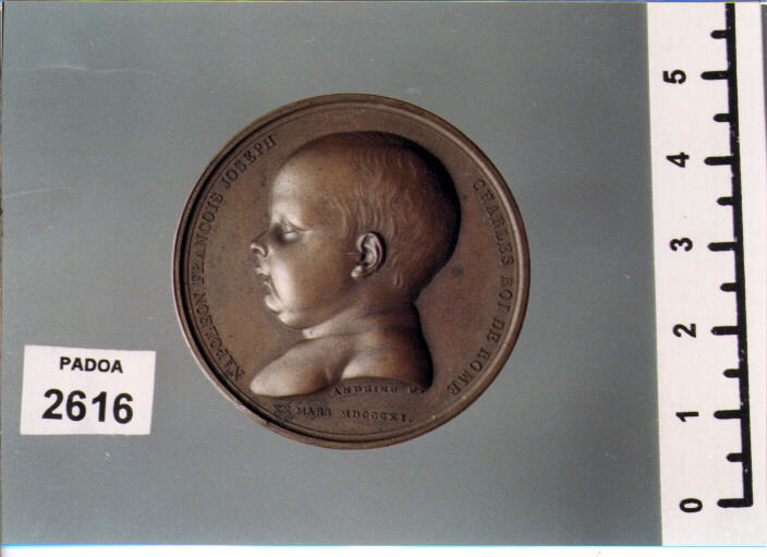 D/ DUE TESTE ACCOLLATE A D. ; SOTTO, ANDRIEU F. DENON D. ; R/ NAPOLEON FRANCOIS JOSEPH CHARLES ROI DE ROME, BUSTO A S. ; XX MARS MDCCCXI. ; NEL TAGLIO, ANDRIEU F