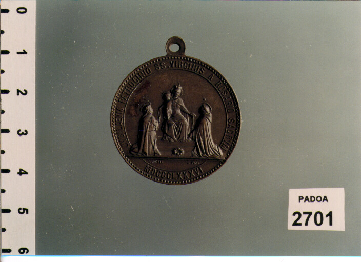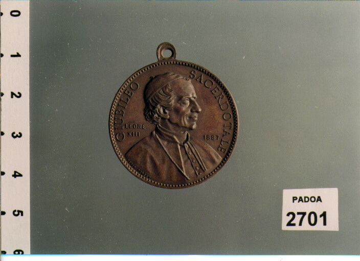 D/ GIUBILEO SACERDOTALE, BUSTO A D.; NEL CAMPO A S., LEONE/ XIII; A D. 1887; SOTTO, PENIN PONDET; R/ JUBILAEVM PATROCINIO SS. VIRGINIS A ROSARIO SACRVM MDCCCLXXXVI, LA VERGINE COL BAMBINO TRA DUE SANTI; IN ESERGO, L. PENIN A. LYON