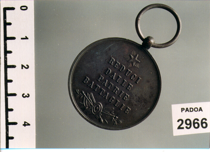 D/ GUERRE PER L'INDIPENDENZA E L'UNITA' D'ITALIA, FIGURA STANTE DI DONNA CON LANCIA E SCUDO; R/ REDUCI/ DALLE/ PATRIE/ BATTAGLIE