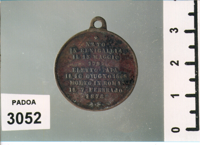 D/ PIUS IX PONT. MAX., BUSTO A S.; SOTTO, ROMA; R/ NATO/ IN SENIGALLIA/ IL 13 MAGGIO/ 1782/ ELETTO PAPA/ IL 16 GIUGNO 1846/ MORTO IN ROMA/ IL 7 FEBBRAJO/ 1878