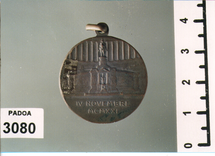D/ FIGURA FEMMINILE ALLEGORICA PORGE UN RAMO D'OLIVO SUL CORPO DEL MILITEIGNOTO ; NEL CAMPO A S., IGNOTO; A D., MILITI; IN ESERGO, 1915-1918; R/ L'ALTARE DELLA PATRIA; IN ESERGO, IV NOVEMBRE/ MCMXXI