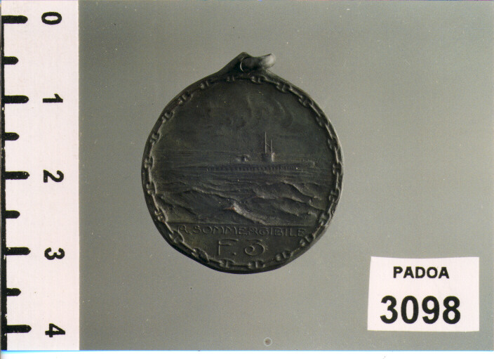 D/ - FORTUNA FAVEAT FORTITUDINI-, FIGURA FEMMINILE ALLEGORICA; R/ SOMMERGIBILE IN ALTO MARE; IN ESERGO, R. SOMMERGIBILE/ F. 3