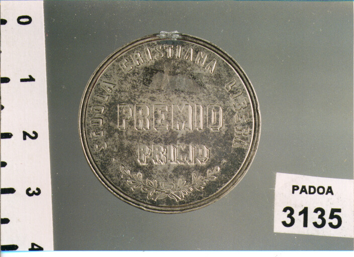 D/ SCUOLA CRISTIANA LIBERA; NEL CAMPO, PREMIO/ PRIMO; R/ ANNO 1877-78 LIVORNO; NEL CAMPO, BACHI ELETRA