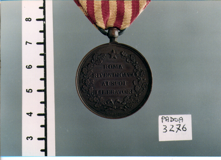 D/ STEMMA DI ROMA SORMONTATO DA LUPA CON GEMELLI ENTRO CORONA DI QUERCIA;SOTTO, C. M.; R/ ROMA/ RIVENDICATA/ AI SUOI/ LIBERATORI, ENTRO CORONA DI QUERCIA; SOTTO, C. MOSCETTI