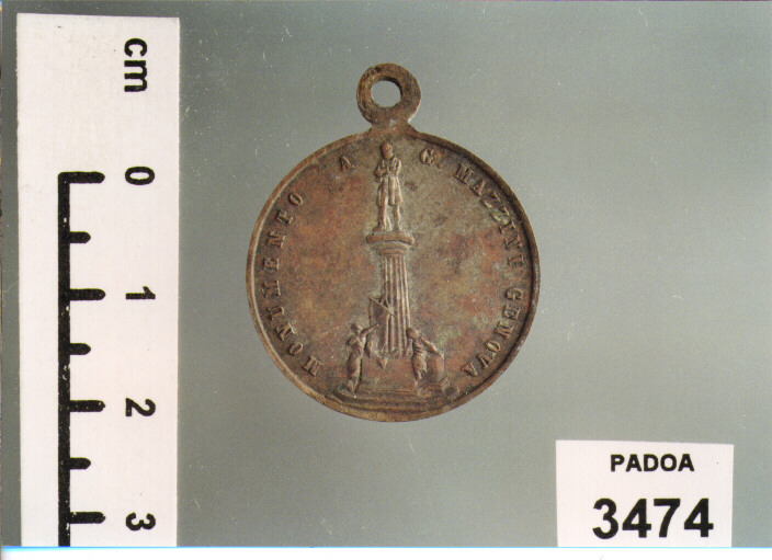 D/ RICORDO G. MAZZINI GIUGNO 82., BUSTO A D.; R/ MONUMENTO A G. MAZZINI GENOVA, IL MONUMENTO