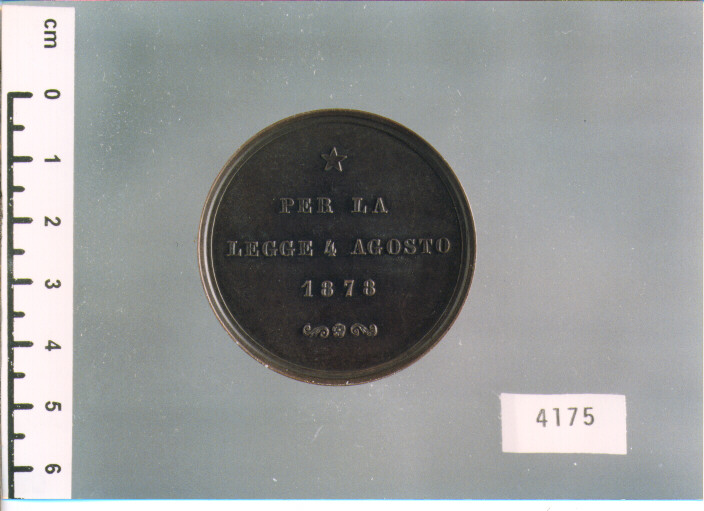 D/ PER LA/ LEGGE 4 AGOSTO/ 1878; R/ AL/ DEPUTATO/ DOMENICO/ ZEPPA/ I COMUNI DI/ BRACCIANO/ MANZIANA/ E/ CANALE/ RICONOSCENTI, ENTRO CORONA DI ALLORO
