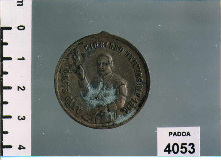 D/ ANNO SANTO GIUBILEO UNIVERSALE 1875, MEZZA FIGURA DEL PONTEFICE A S.; R/ II. CENTENARIO DEL S. CUORE DI GESU' 1875, LA MADONNA IN GINOCCHIO DAVANTI AL CRISTO